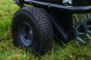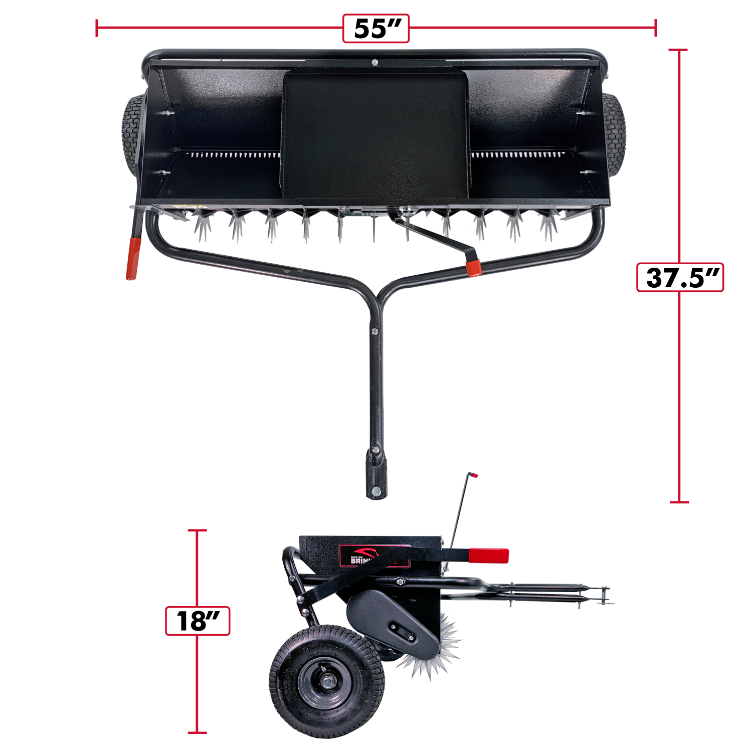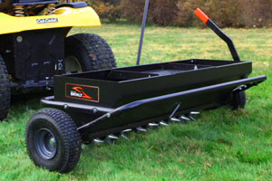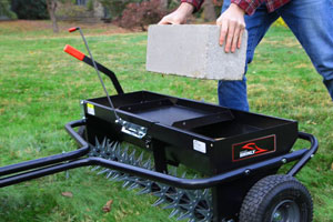 The pneumatic turf-tread tiles can easily conquer rough terrain, while the all-steel hopper and tubular steel frame ensure season-after-season durability. The included all-steel weight tray also allows for an extra 75 lbs. of weight to be added when you need more weight to achieve soil penetration on tougher ground. If you want max efficiency and unmatched durability, look no further than a Brinly Aerator Spreader and get more done in less time!