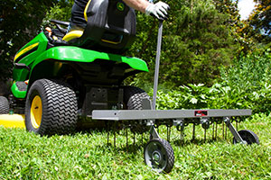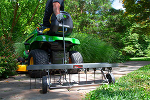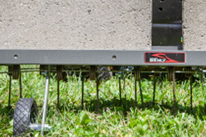If your lawn has excessive thatch buildup, Brinly’s 40” Tow-Behind Dethatcher is the tool for the job. While some thatch can be beneficial to protecting a lawn's roots, more than about a half of an inch can suffocate your lawn, preventing rain, air, and fertilizer from reaching the soil. The Brinly Dethatcher, in a rugged gunmetal-tone finish, gently combs unwanted thatch to the surface where it can be mulched or collected by a Bagger or Lawn Sweeper.