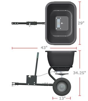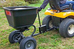 Need to spread larger yards? Brinly’s BS-36BH tow-behind broadcast spreader features a 3.5 cu. ft. hopper, ideal for homeowners and light commercial applications of 1 acre and larger. The universal hitch fits most lawn tractors so you don’t have to do the heavy work. Use it year-round to easily apply seed, fertilizer, and other lawn chemicals. In winter, use your broadcast spreader to apply salt, sand, & other snow and ice melt agents. So no matter the season – spring, summer, fall or winter – This Spreader has you and your property covered.