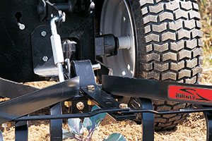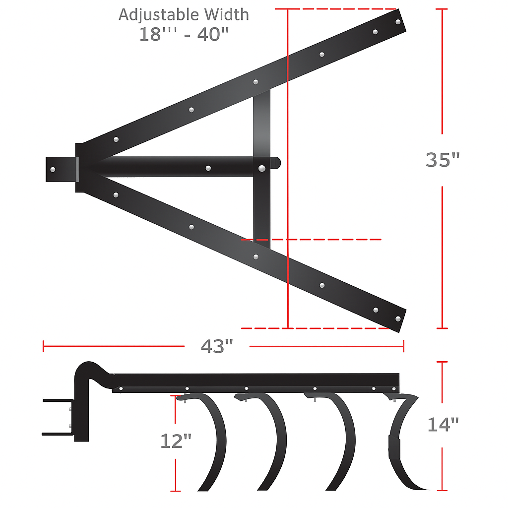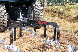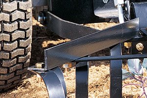 • Steel shanks with adjustable heights remove weeds & aerate soil