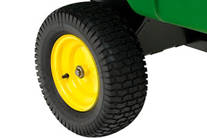 18" x 9.5" pneumatic tires with turf tread to cover various terrain with ease.