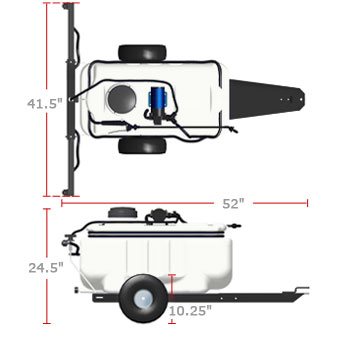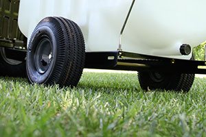 The Brinly ST-25BH lawn sprayer is designed to be supremely versatile. Applying liquids to tall trees and large bushes is simple thanks to the 12-foot hand sprayer. Its collapsible swing-away booms and in-line mounted tank design provide easy maneuvering through lawn and garden gates, around retaining walls, asymmetrical trees, and other tight areas. Then swing out the sprayer booms to reach their full 90″ spray width to cover large areas quickly. The Ultra Lo-Drift™ spray tips provide the best accuracy for both contact and systemic weed control with minimal wind drift. And since the easy on-off switch is mounted on the lawn tractor, you keep the power conveniently at your fingertips.