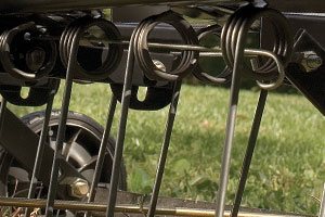 The (24) 3/16″ diameter triple coil strength spring steel tines guarantee maximum efficiency, durability and thatch removal.