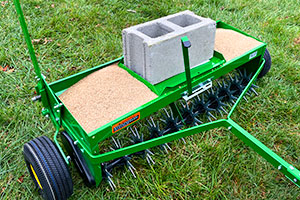 Drop seed, fertilizer, or lime while you aerate to expedite your time in the lawn and ensures material enters the soil.