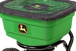 John Deere spreaders are excellent for year-round use. The 70 lb. capacity LP31340 features a durable poly hopper and spreads seed, fertilizer, ice melt, and salt. The fully enclosed aluminum gearbox provide a long lifespan. while the 10" tires are heavy-duty for various terrain. The ergonomic split handle with adjustable height makes for a smooth performance and the positive on/off system means no cables and easy use. The LP31340 includes a screen, cover, & side deflector.