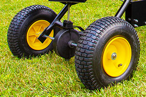 13" x 5" pneumatic tires with turf tread to cover various terrain with ease.