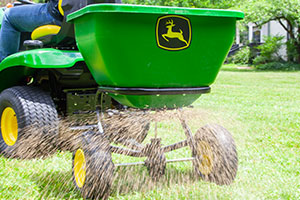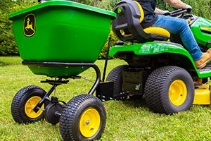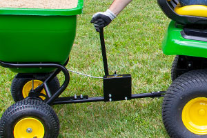 Reloading your spreader over and over can be time-consuming and tiresome. The John Deere 175 lb. tow-behind broadcast Spreader expedites the job with less passes. This spreader was designed for heavy-duty jobs and was built to last; the durable polyethylene hopper won’t rust or dent and the gears are fully enclosed to protect against corrosion. The patented directional spread pattern, Auto flow, ensures accurate and precise application and stops material from spreading when the tractor stops. Use year-round to apply seed, fertilizer and lawn chemicals or in the winter to spread sand, salt and other melting agents.