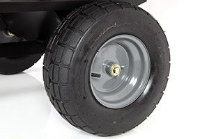 Durable 16” x 6” pneumatic stud tread tires provide strength and dependability for heavier loads, haul after haul, season after season.